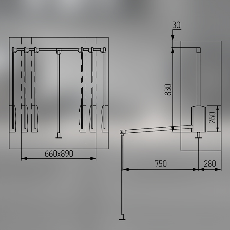 Мебельный лифт алюминиевый NN черный/хром с доводчиком 600-830 мм