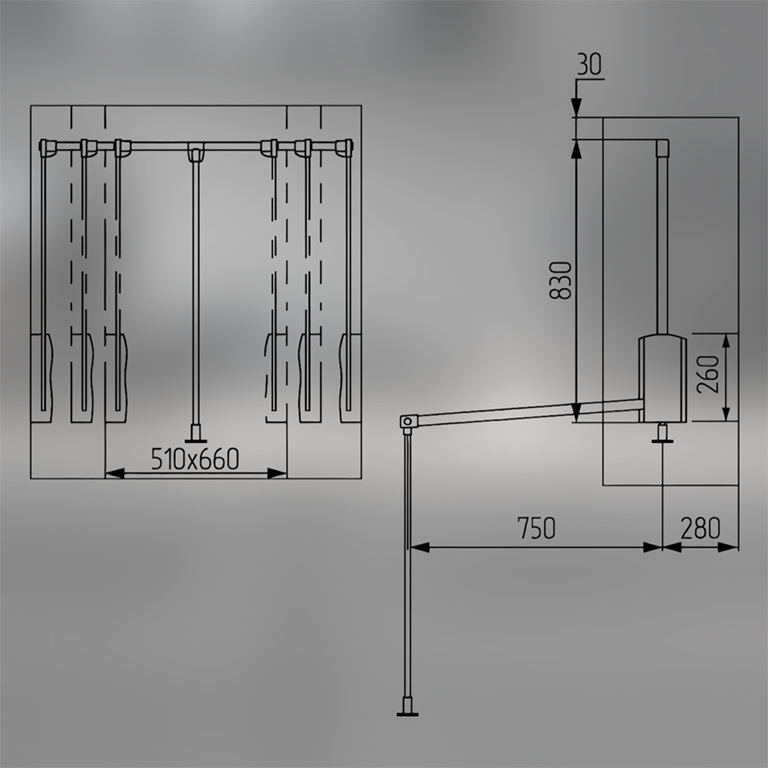 Мебельный лифт алюминиевый NN черный/хром с доводчиком 450-600 мм