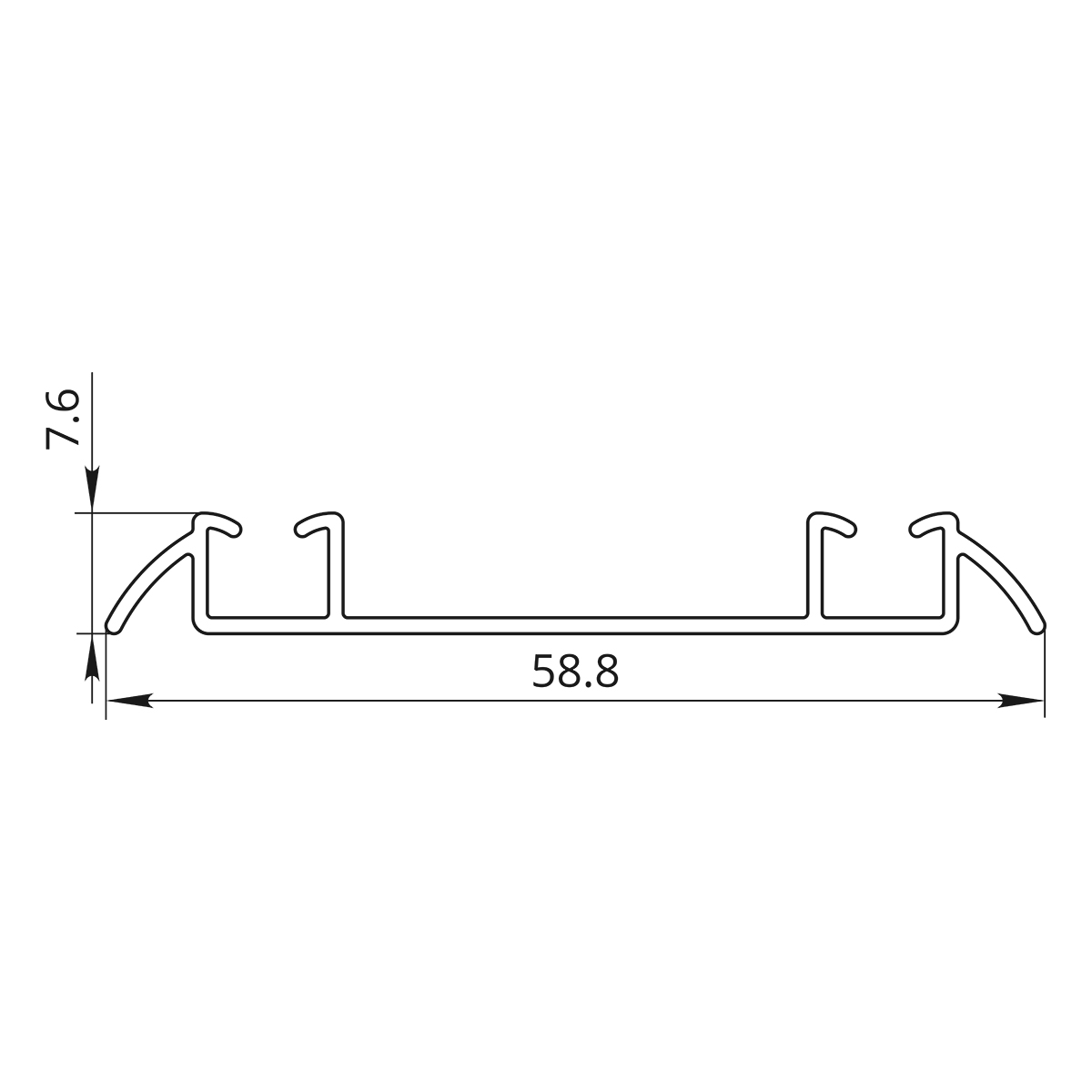 Видимая высота трека 7.5 мм, внутренняя — 6 мм. Ширина направляющей 60 мм. Ширина каждого канала без учета наклона края — 1 см.