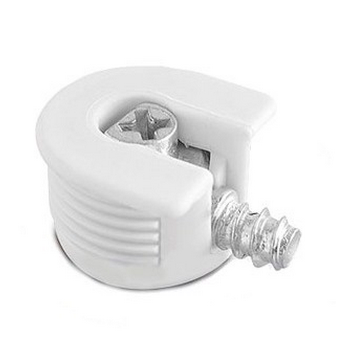 Эксцентриковая стяжка быстрого монтажа (еще ее называют стяжкой для полок, полкодержателем или «рафиксы») бывает цельнометаллической или в пластиковом корпусе различных цветов. Шток для таких стяжек может быть как с евро –винтом для вкручивания непосредственно в ДСП (именно он применяется чаще всего), так и с метрической резьбой М6 для вкручивания в футорки (муфты). На некоторых фабриках такой вид крепежа называется полкодержателем, так как предназначен только для горизонтальных деталей. Горизонтальные полки, собранные с использованием этих стяжек дополнительно стягивают соединение, что усиливает жесткость всего каркаса мебели. Многократный демонтаж и монтаж мебели на подобный крепеж не приводит к износу соединений.