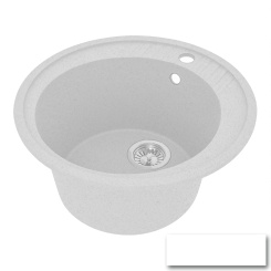 Каменная мойка диаметром 505 мм с круглой чашей диаметром 398 мм. Глубина мойки 180 мм при высоте мойки 200 мм. Диаметр сливного отверстия 116 мм. Мойка упакована в пакет и картонную коробку с маркировкой. Логотип размещен на шильдике в чаше мойки. Мойка представлена в 6 матовых и 6 глянцевых цветах. Вес изделия 12,3 кг.