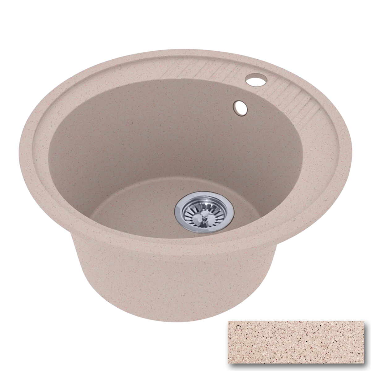 Каменная мойка диаметром 505 мм с круглой чашей диаметром 398 мм. Глубина мойки 180 мм при высоте мойки 200 мм. Диаметр сливного отверстия 116 мм. Мойка упакована в пакет и картонную коробку с маркировкой. Логотип размещен на шильдике в чаше мойки. Мойка представлена в 6 матовых и 6 глянцевых цветах. Вес изделия 12,3 кг.