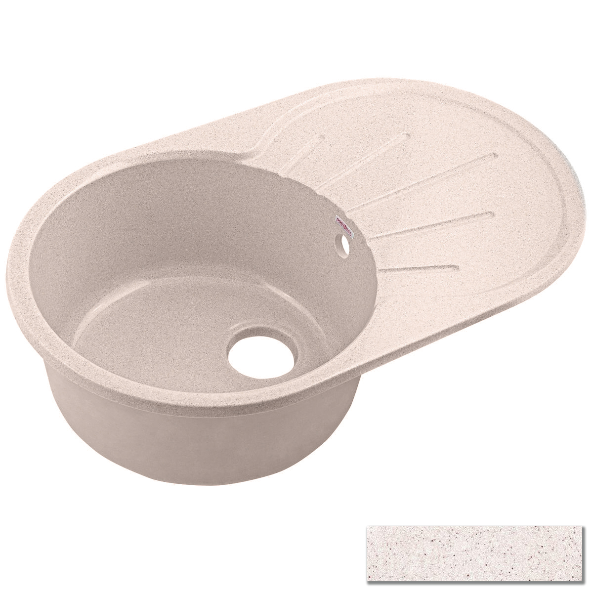 Широкая овальная мойка 740х460 мм с круглой чашей диаметром 400 мм. Высота мойки 210 мм, глубина чаши 190 мм, диаметр сливного отверстия 116 мм. На крыле мойки — рельеф в виде расходящихся лучей. Мойка представлена в 6 матовых и 6 глянцевых цветах.