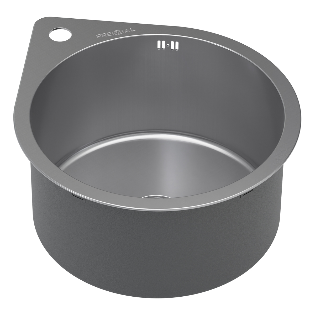 Кухонная мойка из премиальной нержавеющей стали до 3 мм, врезного или подстольного монтажа, каплевидной формы 420х490 мм, с круглой чашей диаметром 370 мм, глубина чаши 200 мм.