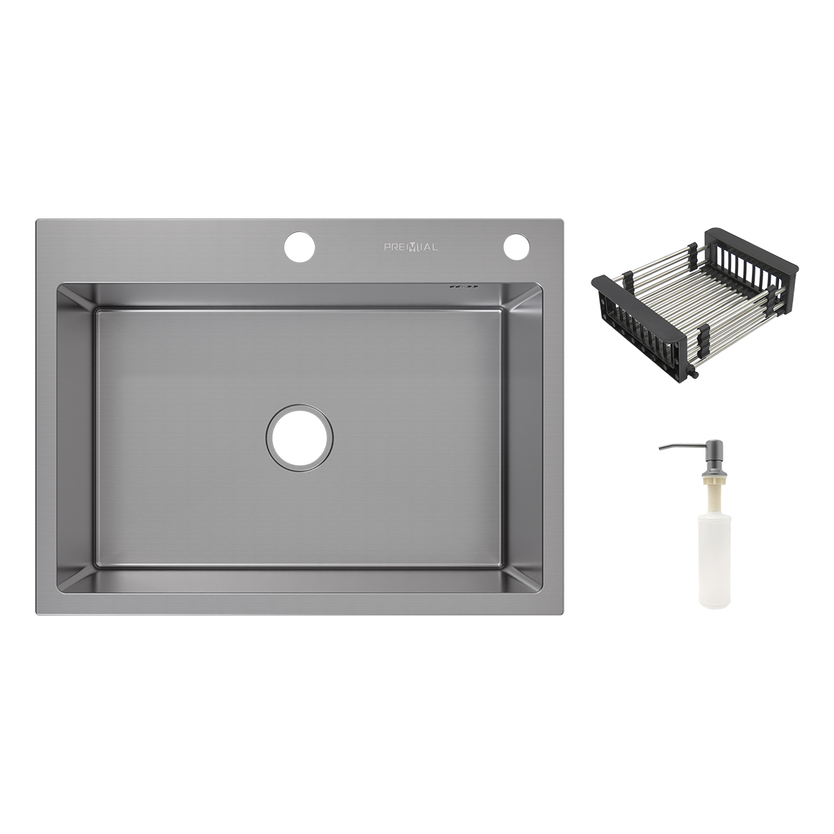 Мойка из пищевой нержавеющей стали 3 мм, габаритные размеры 600х450 мм, выполнена вручную. Размер чаши 550х350 мм. Дно сварное «конвертом», корпус в шумопоглощающей обливке серого цвета из натуральных пигментов и нейтральных полимеров. Сделано одно отверстие под смеситель и одно отверстие под дозатор. В качестве аксессуаров к мойке в стандартной комплектации — телескопический колландер из стального прутка и пластиковых держателей Kit и дозатор для жидких моющих средств Cherry. У мойки комфортная глубина 220 мм, снижающая разбрызгивание воды, вес нетто 6,3 кг, вес брутто 8,9 кг. Малый радиус скругления углов чаши — для большей вместимости.