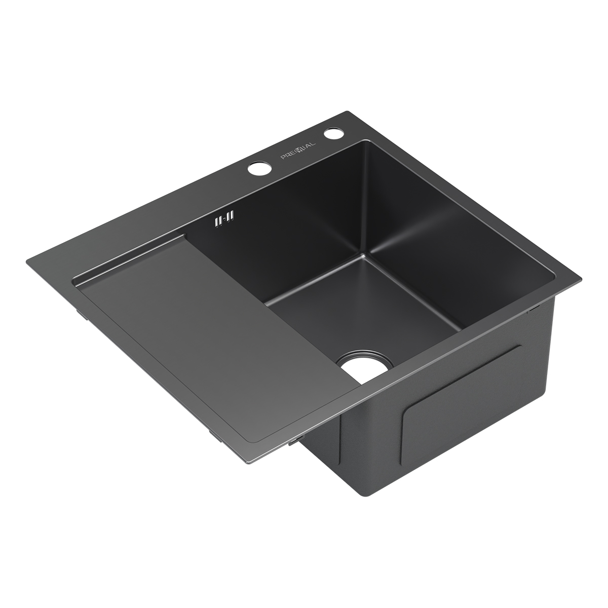 На крыле мойки — гравировка логотипа Premial® и марки стали.