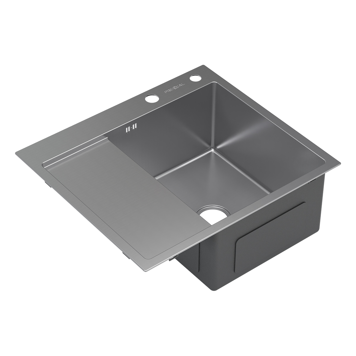 На крыле мойки — гравировка логотипа Premial® и марки стали.