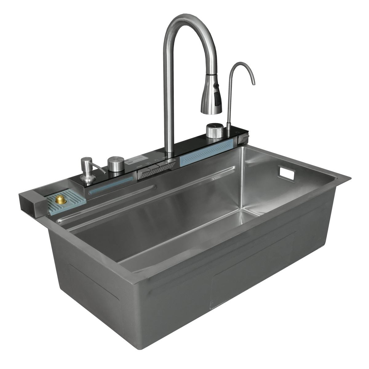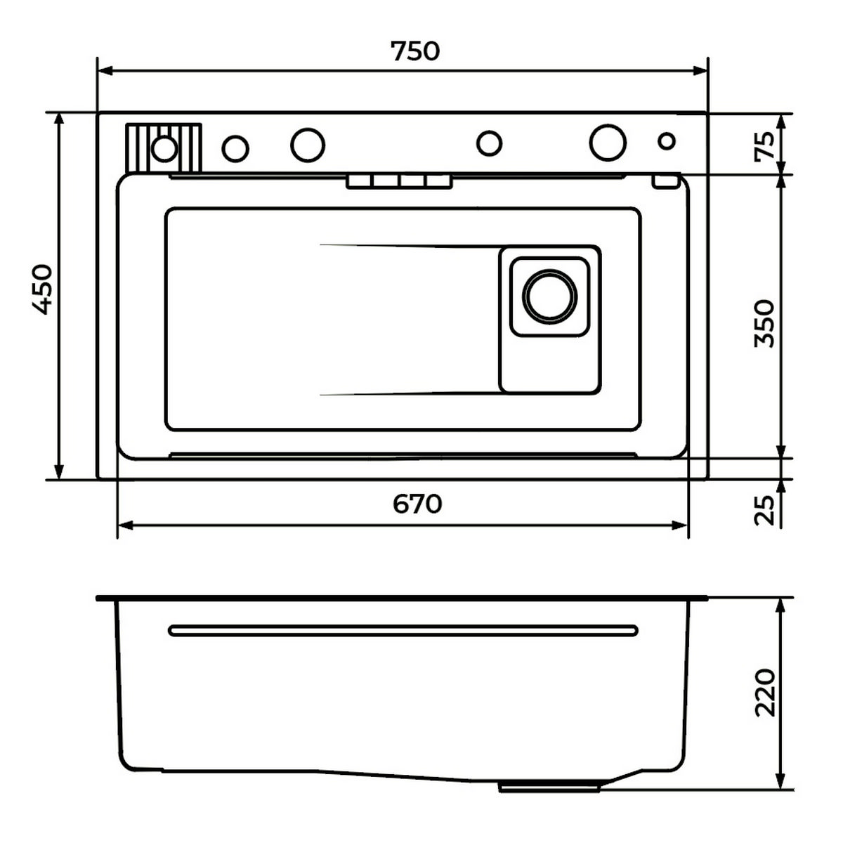 Мойка из пищевой нержавеющей стали SUS304 3 мм, размером 750*450 мм со сложным рельефом дна для эффективного стока воды. Вес нетто 7,3 кг, вес брутто 16,9 кг.