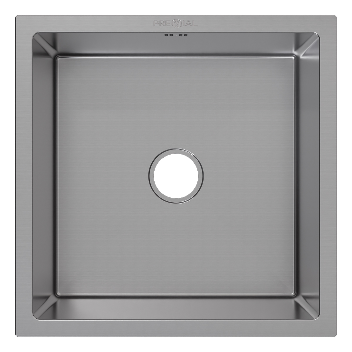 На крыле мойки — гравировка логотипа Premial® и марки стали.