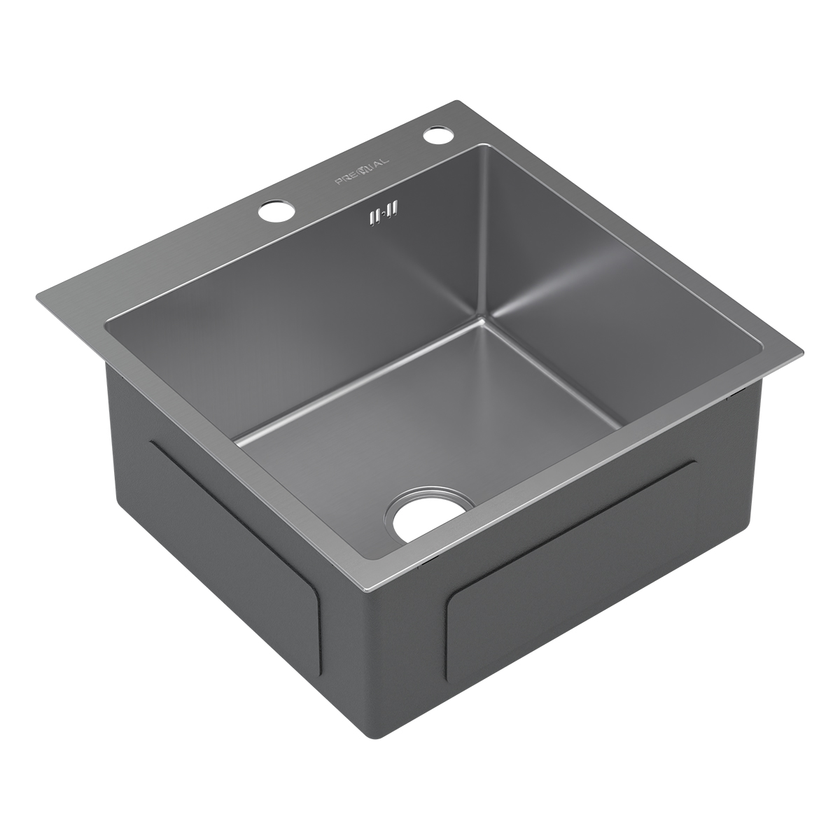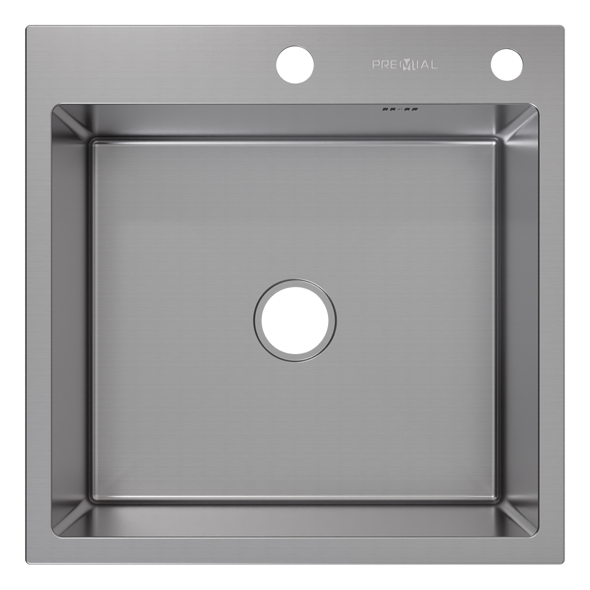 На крыле мойки — гравировка логотипа Premial® и марки стали.