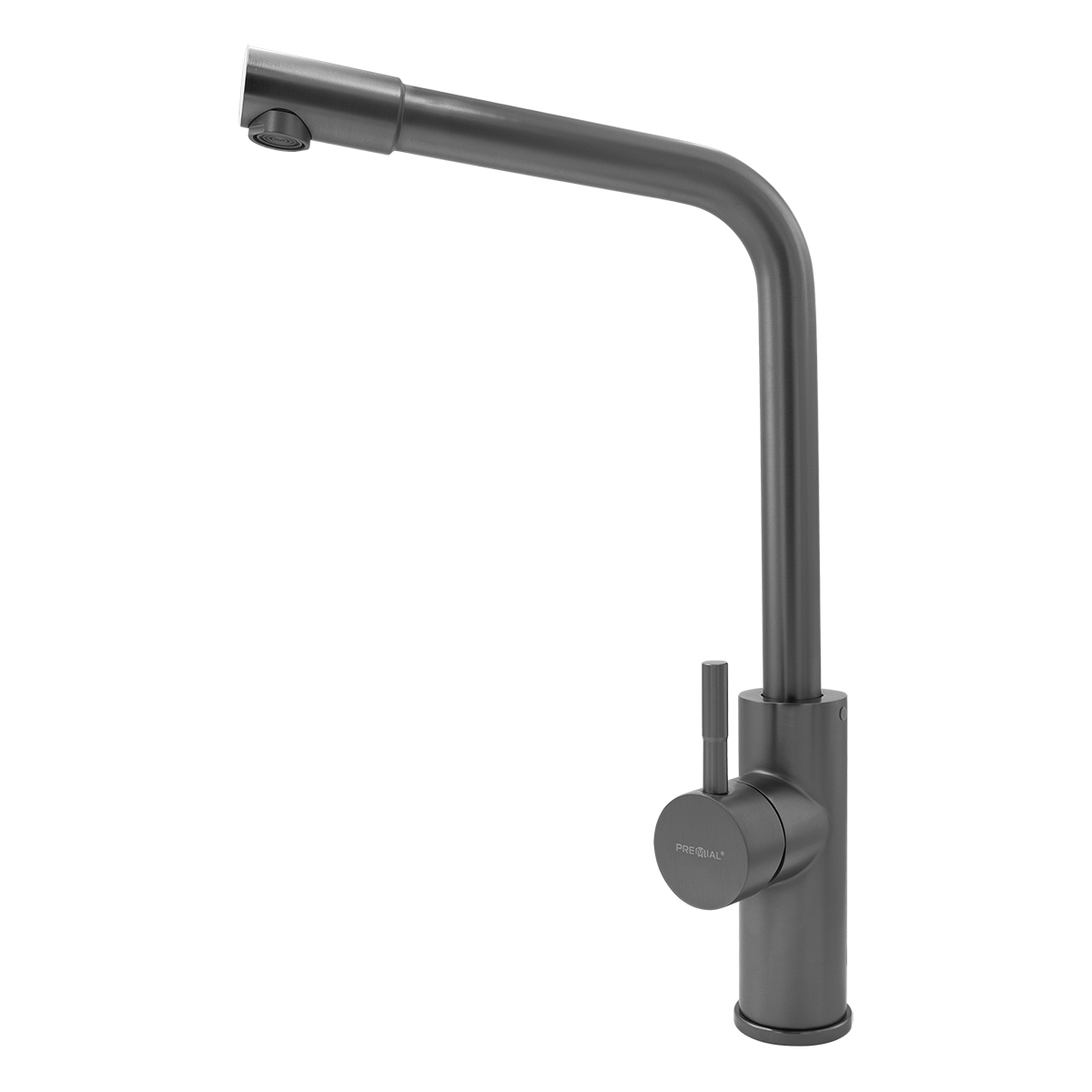Кухонный смеситель из «пищевой» нержавеющей стали без свинца в составе с тонким поворотным изливом.