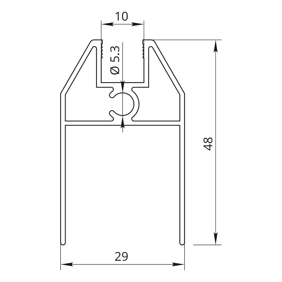 Нижний горизонтальный профиль для рамки двери в подвесной системе. Для наполнения толщиной до 10 мм. Профиль интегрируется с симметричным вертикальным профилем Premial— I (с кромочным каналом), П и Н. Длина профиля 6000 мм.