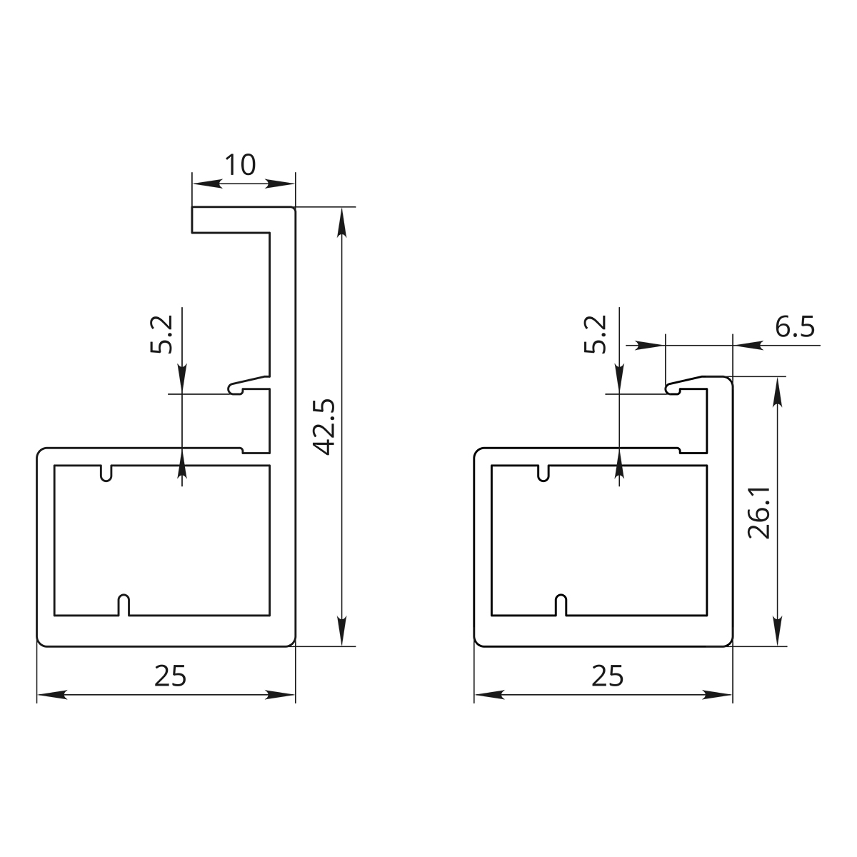 Профиль предназначен в качестве ручки и для обрамления с одной из сторон распашного фасада кухонной витрины или корпусной мебели.