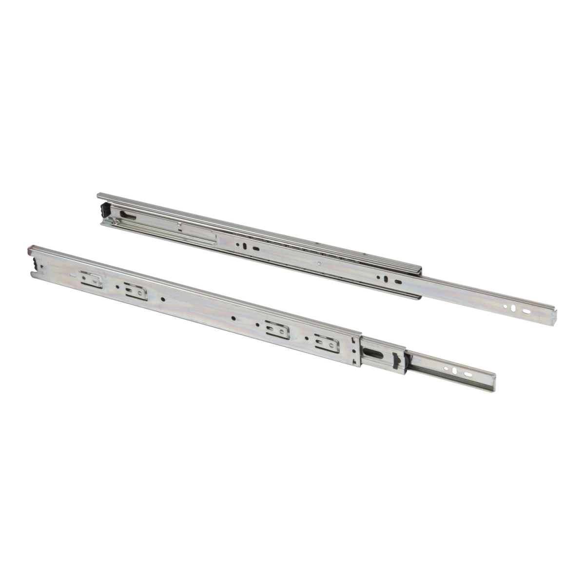 Классическая направляющая с шарикоподшипниковым механизмом и телескопической структурой, обеспечивает полное выдвижение. Высота 45 мм. Нагрузка 35 кг. Протестированы на 80000 циклов открывания-закрывания. Изготовлена из холоднокатаной стали. Доступный размерный ряд от 250 до 600 мм. Резиновый фиксатор от самопроизвольного открытия.