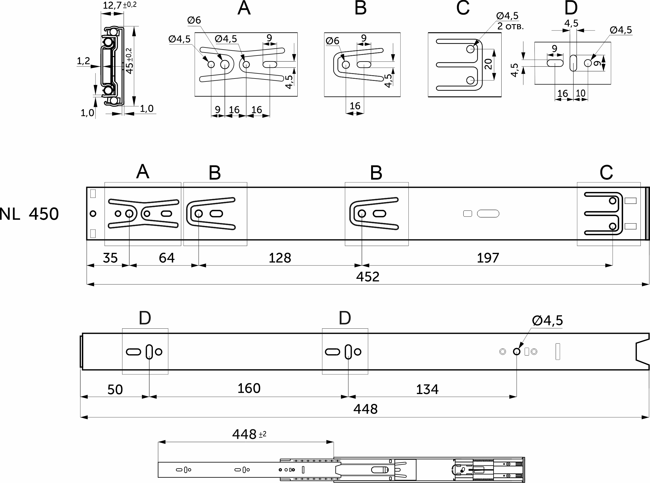 Данная направляющая имеет потерю выдвижения в 52 мм.