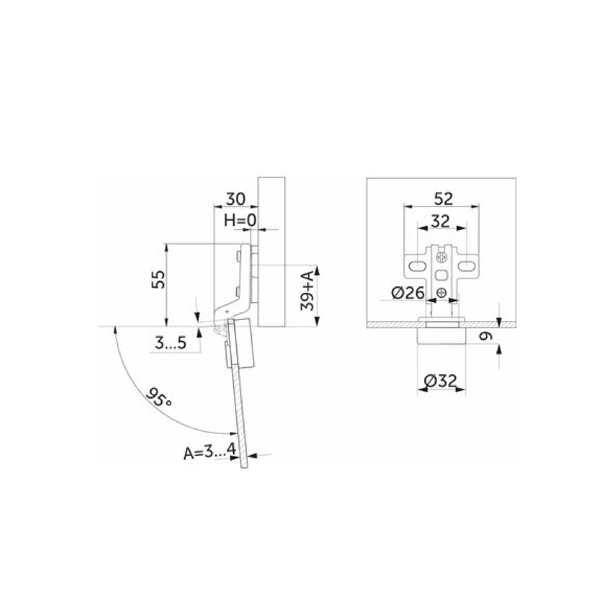 Петля вкладная для стеклянных фасадов 07 + крепление h=0+заглушка круглая, хром, AKS