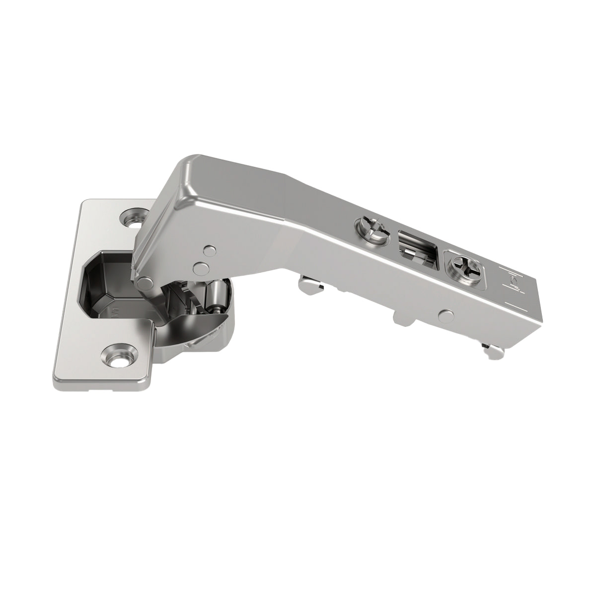 Трехмерная регулировка петли дает возможность отрегулировать фасад по глубине, высоте и ширине. Открывание угла на 105 гр.
