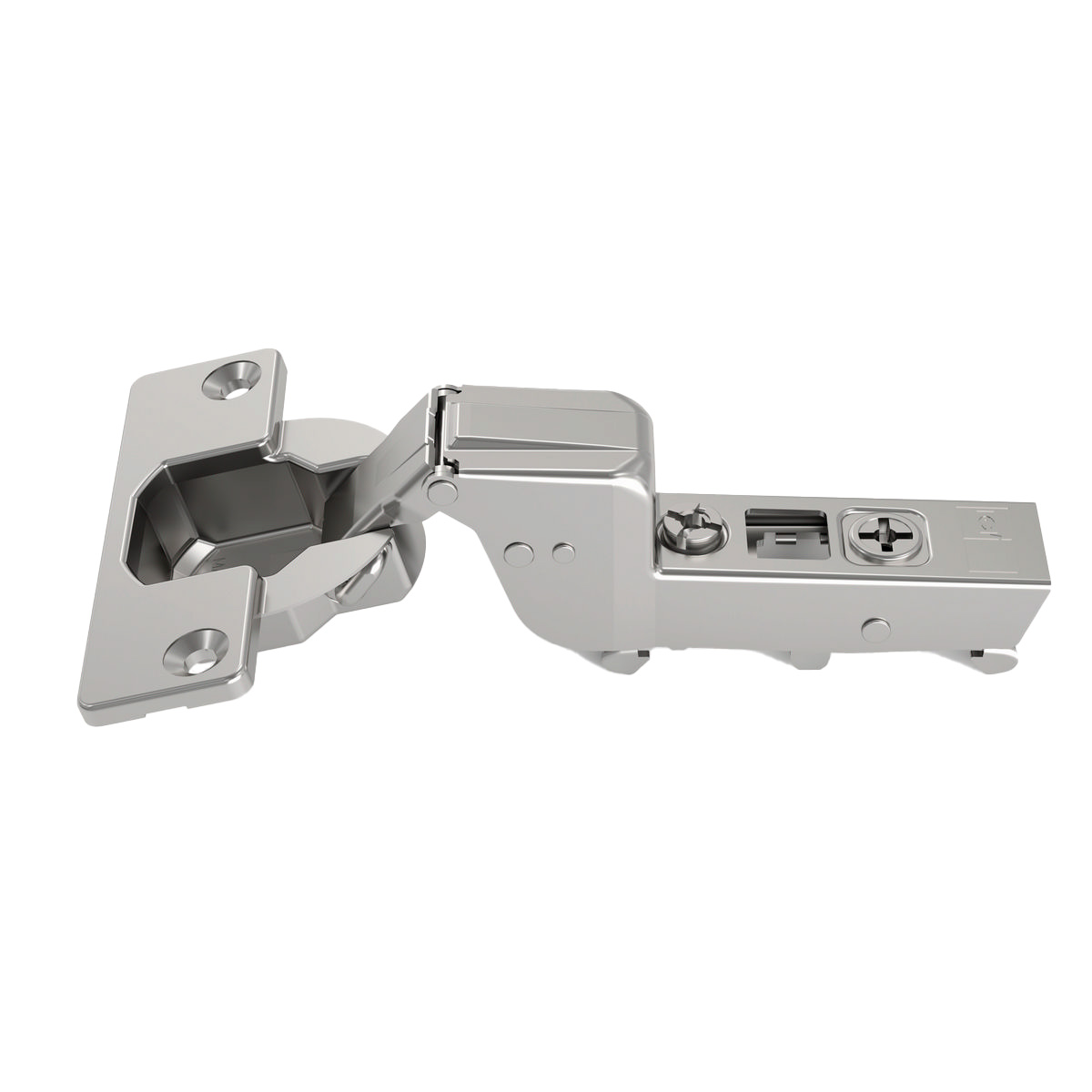 Трехмерная регулировка петли дает возможность отрегулировать фасад по глубине, высоте и ширине. Открывание угла на 105 гр.