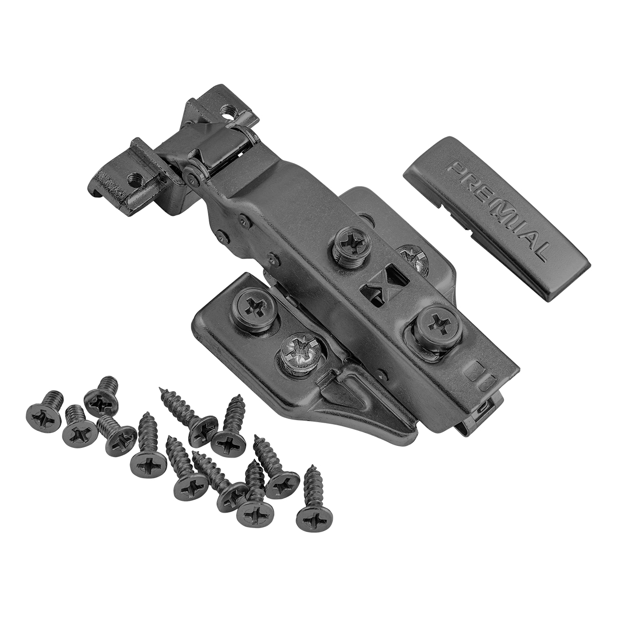 Петля мебельная четырехшарнирная накладная с доводчиком для алюминиевого профиля.