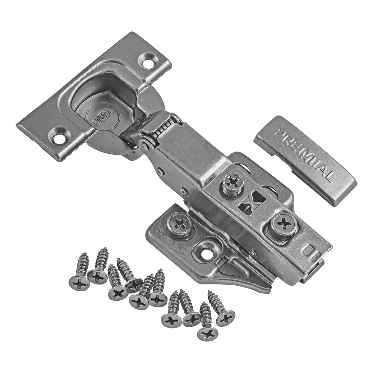 Петля без доводчика с монтажной планкой Н=0 и 3D-регулировкой полунакладная торговой марки PREMIAL Presto. Идеально дополняет линейку петель с доводчиком PREMIAL Presto, поскольку выполнена в едином стиле. Накладка на чашку и тело петли, а также саморезы идут в комплекте.