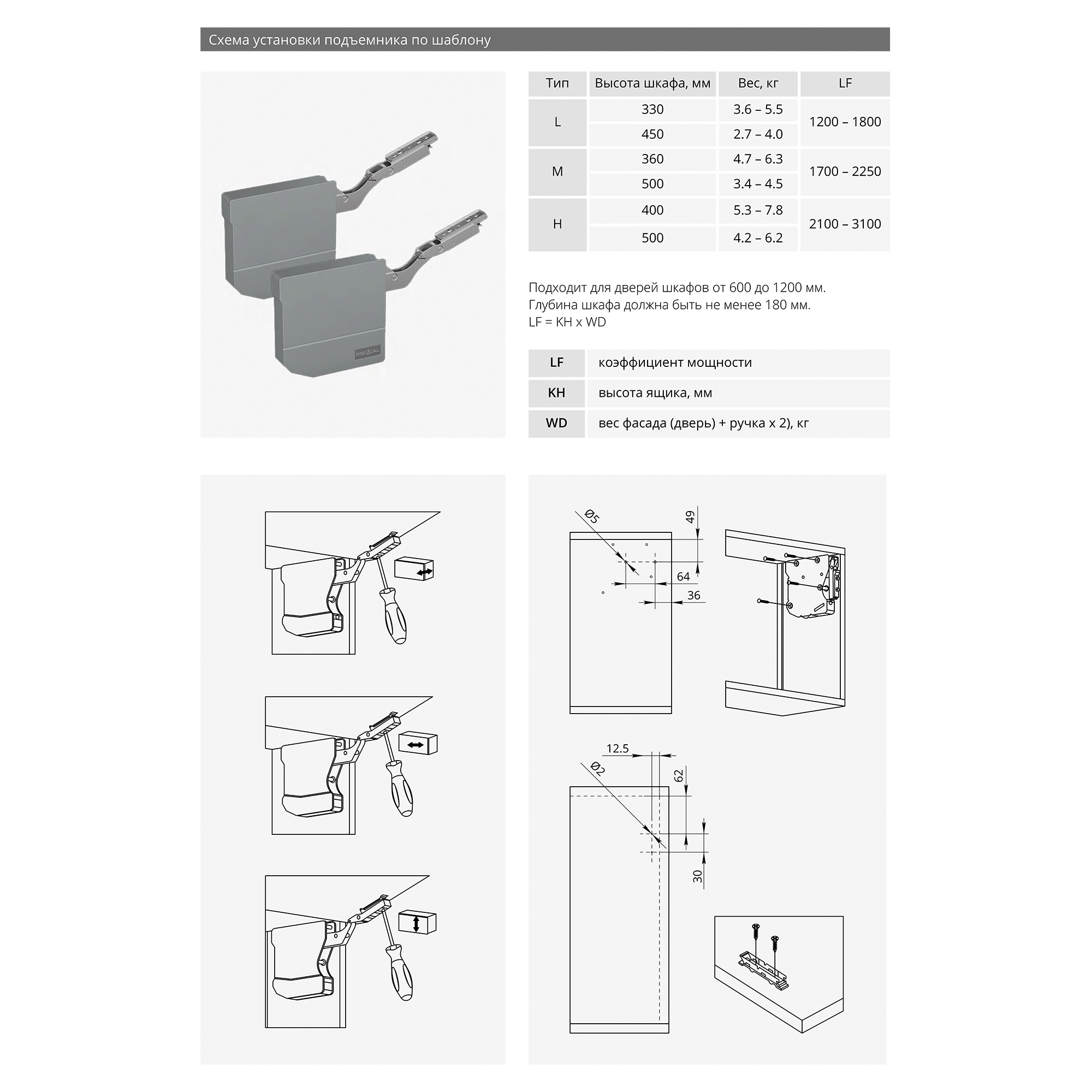 Подъёмник/заглушки/крепление фасада/саморезы/шаблоны+инструкция