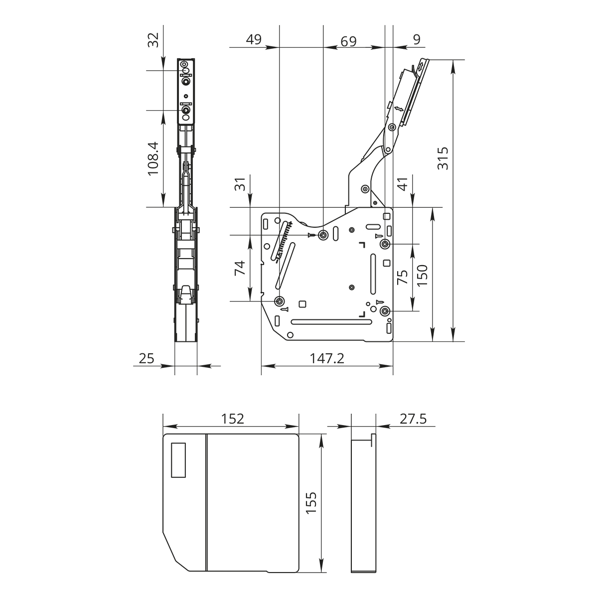 Подъемный механизм предназначен для установки на ящики с открытием вверх. Имеет регулировки в трех плоскостях для выравнивания фасада и регулировки усилий. Устанавливается без петель. Имеет крепления Clip-on к фасаду для удобного и быстрого монтажа / демонтажа фасада. Имеет функцию фиксации в любом положении и систему доводчика, что обеспечивает плавное и беcшумное закрытие.