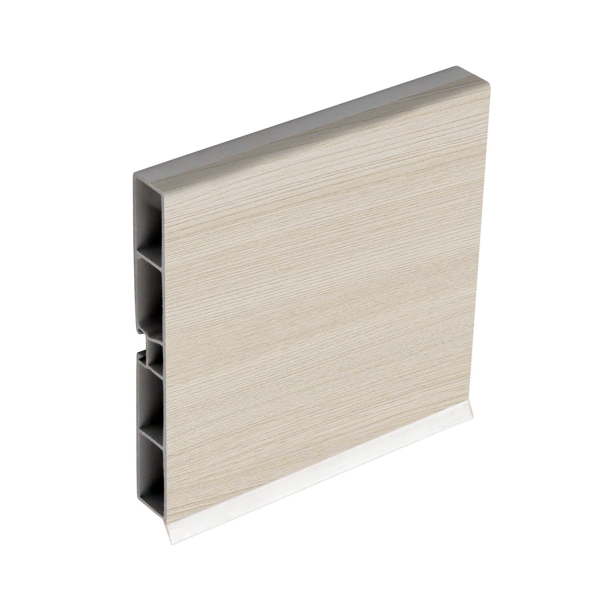 Кухонный цоколь из жесткого прочного пластика, длиной 4 м защищает нижнюю часть кухонного гарнитура от попадания мусора и воды. Уплотнитель из эластичного полимера, незаметно расположен в нижней части цоколя, плотно прилегает к поверхности пола, скрывает все неровности.