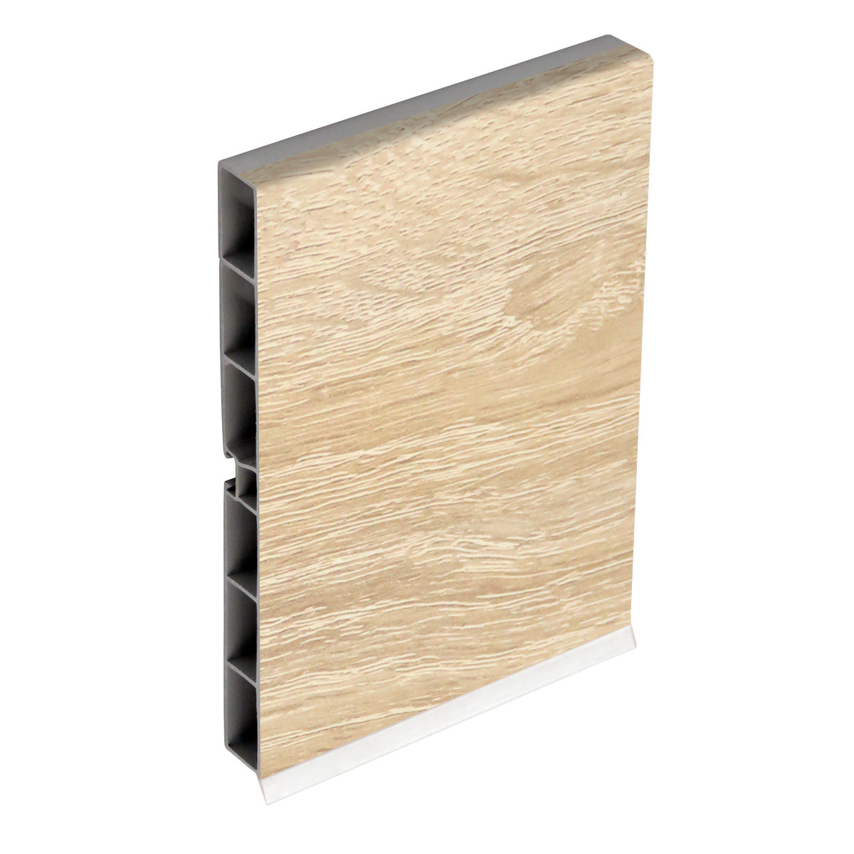 Кухонный цоколь из жесткого прочного пластика, длиной 4 м защищает нижнюю часть кухонного гарнитура от попадания мусора и воды. Уплотнитель из эластичного полимера, незаметно расположен в нижней части цоколя, плотно прилегает к поверхности пола, скрывает все неровности.