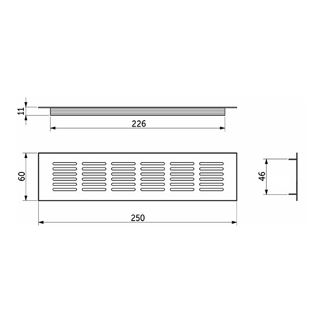 Решётка вентиляционная 250х60мм черная алюминий AKS