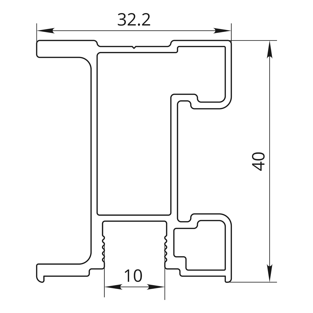 Вертикальный симметричный алюминиевый профиль Premial для шкафов-купе. Благодаря обеим рабочим сторонам и надежному строению, вертикальный профиль "I" может использоваться в подвесной системе Aluforce Felix для интерьерных и межкомнатных перегородок.