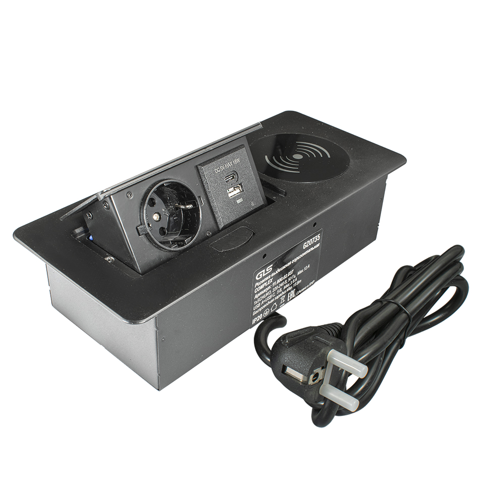1шт сетевую розетку с заземлением (SCHUKO), устройство беспроводной зарядки, 1шт порт