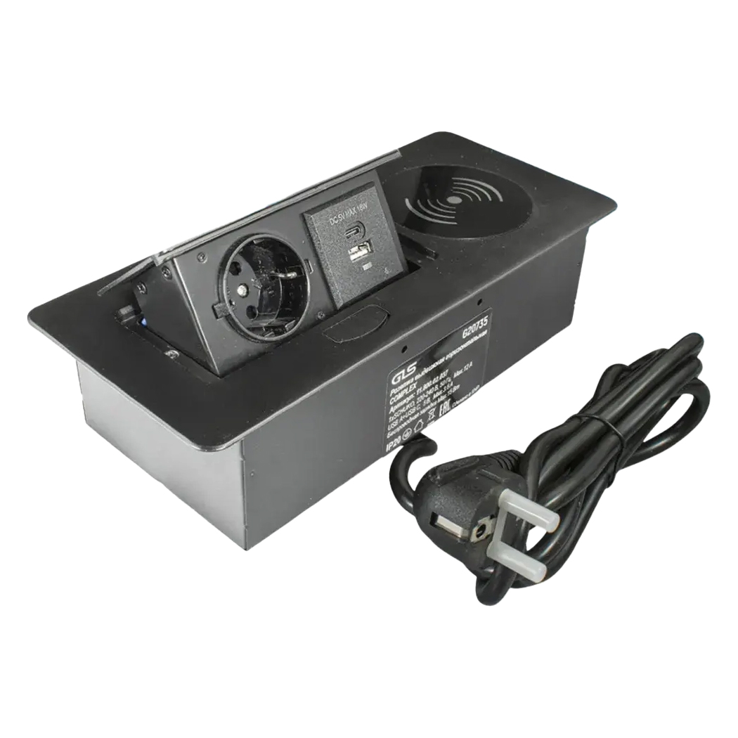 1шт сетевую розетку с заземлением (SCHUKO), устройство беспроводной зарядки, 1шт порт
