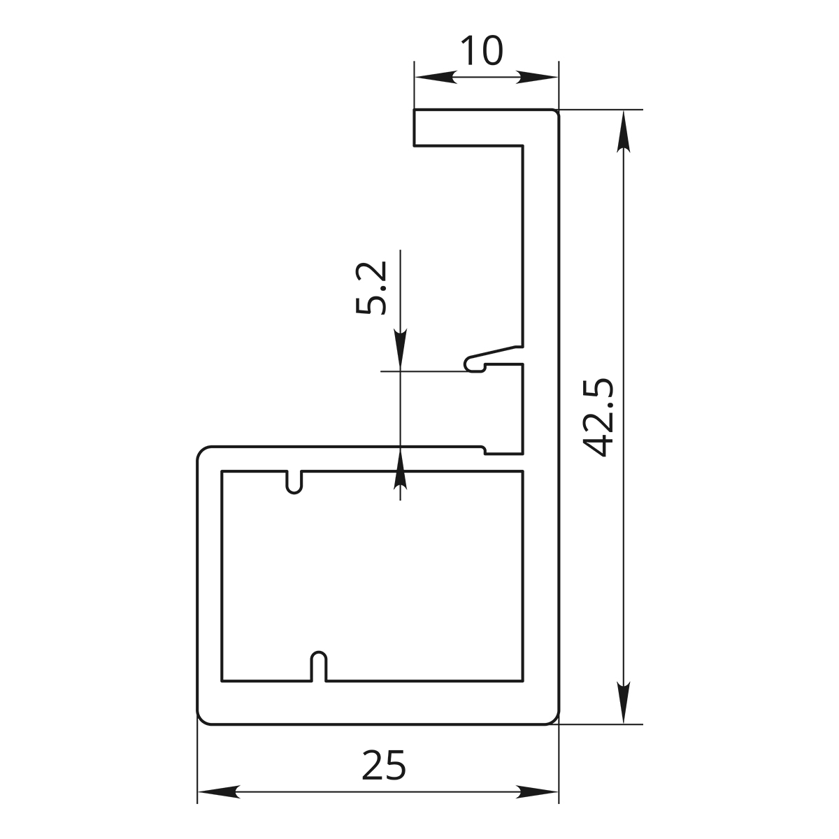 Профиль-ручка для изготовления мебельных стеклянных фасадов в алюминиевой рамке. Наполнение стекло 4 мм. Видимая лицевая часть прямая 10 мм. Расстояние от стекла до ручки 17 мм.