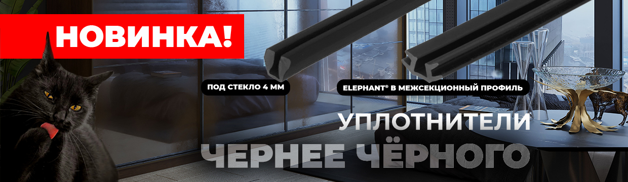 Уплотнитель Elephant для межсекционного (двустороннего) профиля, отлично сочетается с темными декорами профиля (Черный глянец, Черный муар, Графит Браш).