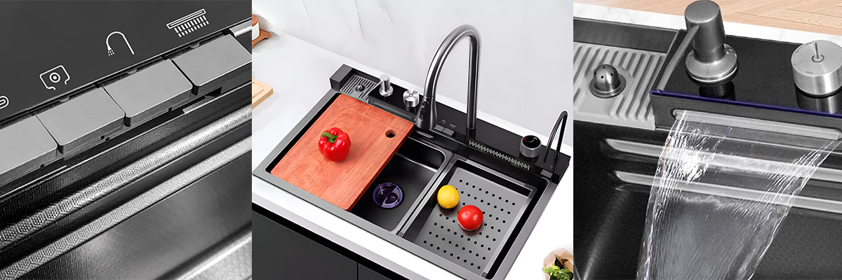Мойка оснащена цифровым дисплеем для контроля температуры и режима смесителя, а также подсветкой для комфорта при работе.