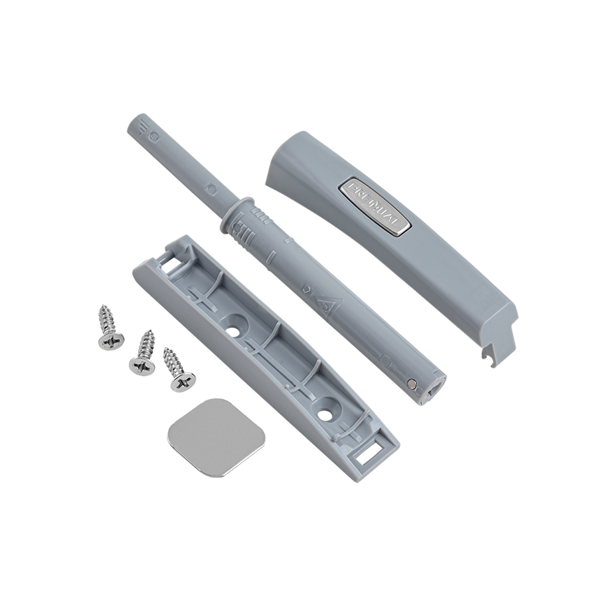 Толкатель с магнитным наконечником под фасады без ручек, устанавливается с петлями без пружин или с пружинами обратного действия. Позволяет оттолкнуть фасад на 35-40 мм для дальнейшего открытия.