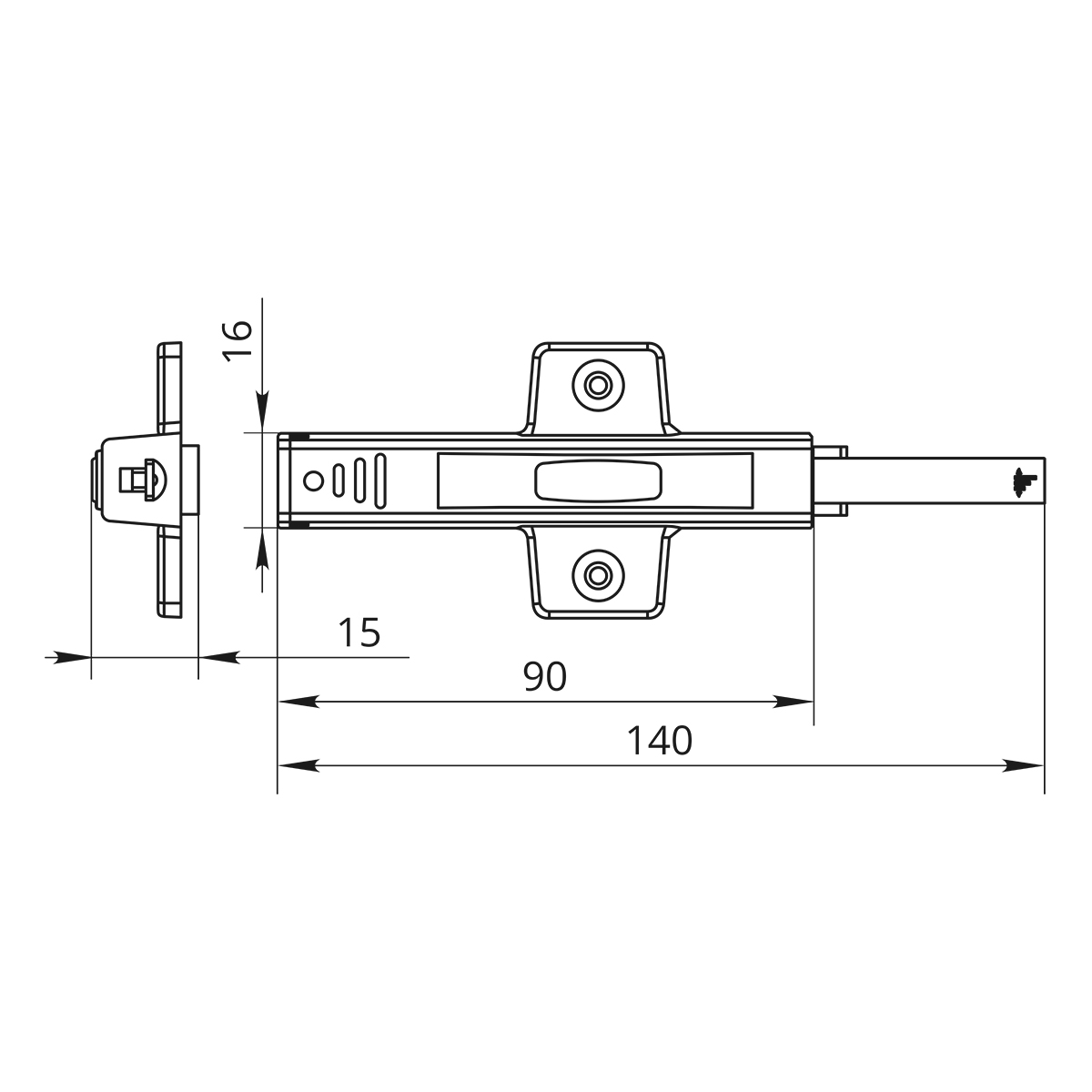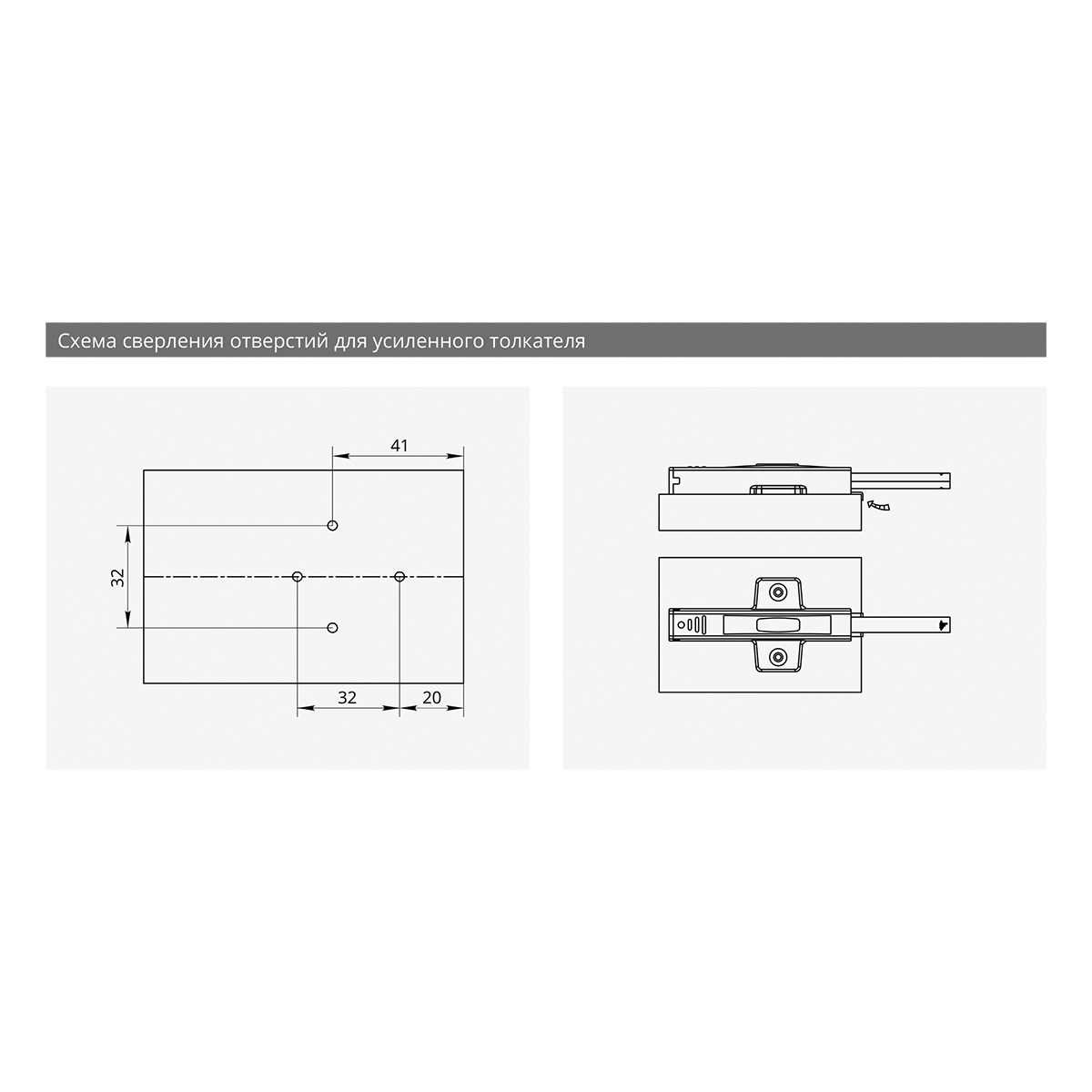 Очень "мощный" накладной толкатель с резиновым наконечником под фасады без ручек, устанавливается с петлями без пружин или с пружинами обратного действия. Предназначен для больших "распашных" дверей.