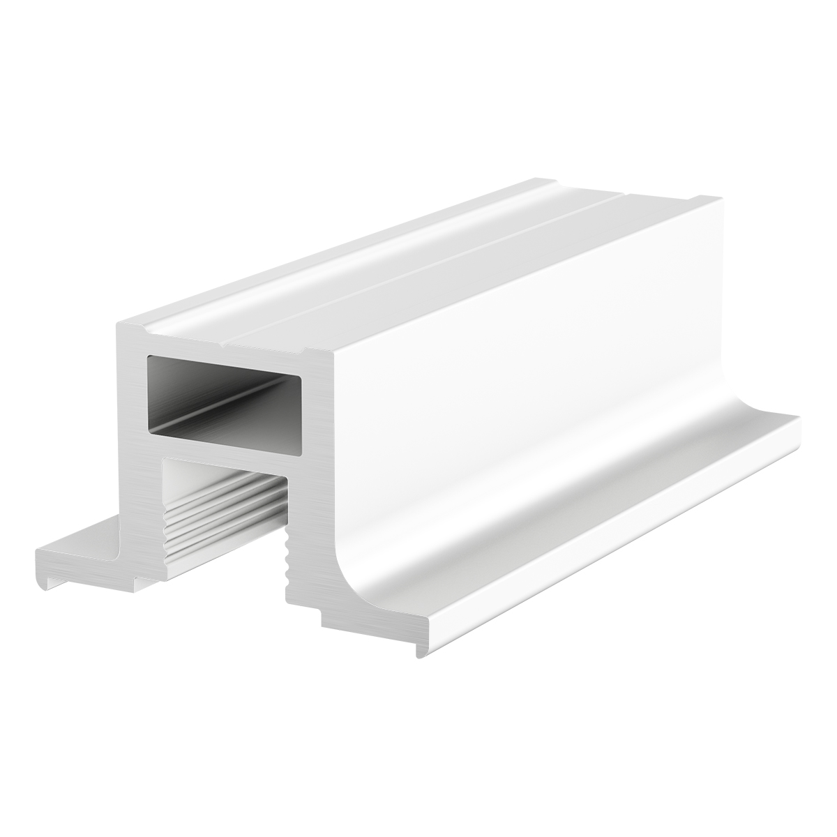 Вертикальный симметричный алюминиевый профиль "A" Premial для шкафов-купе. Благодаря обеим рабочим сторонам и надежному строению, вертикальный профиль может использоваться в подвесной системе Aluforce Felix для интерьерных и межкомнатных перегородок.