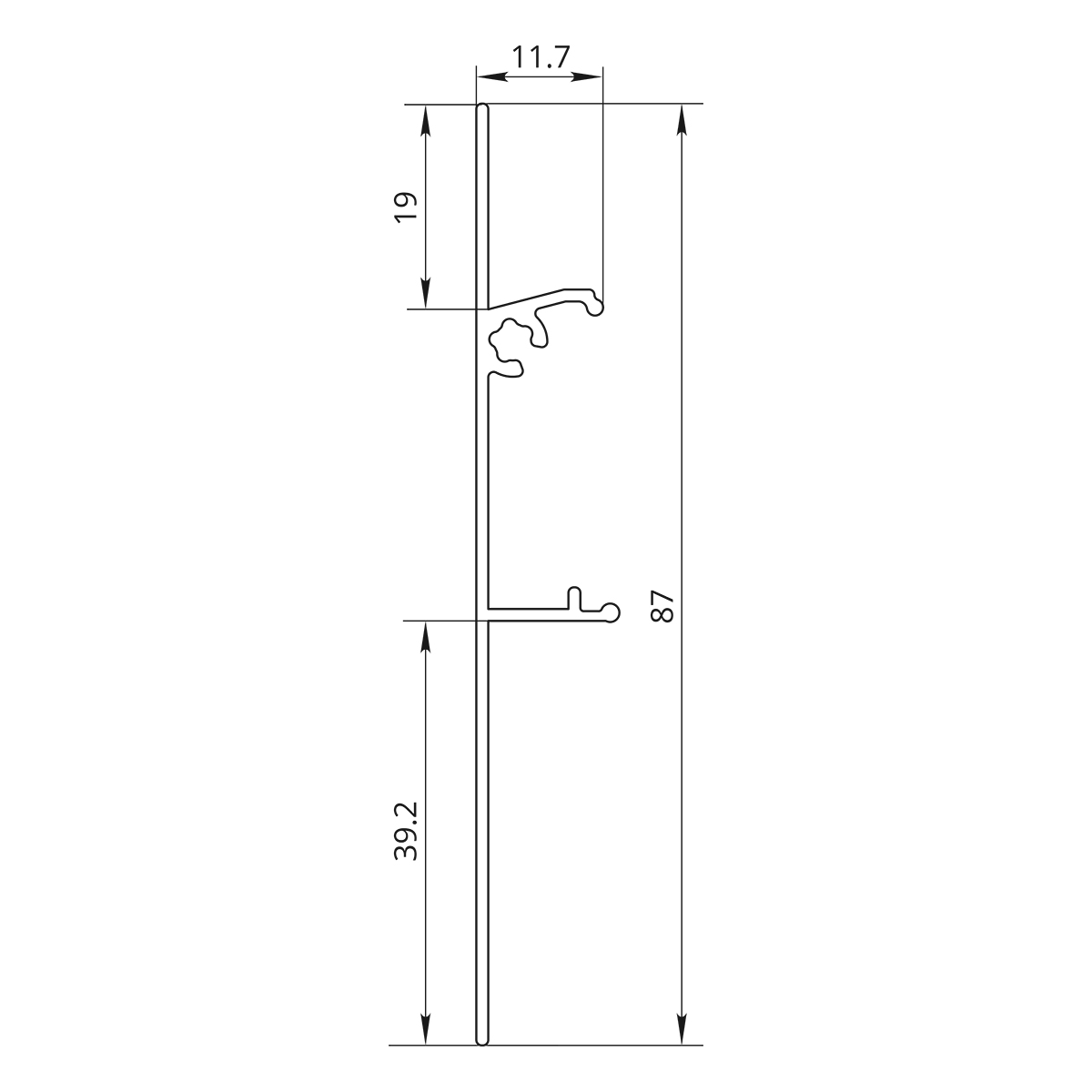 Декоративная накладка для интеграции с верхней направляющей Hilaris в подвесной системе с доводчиком.