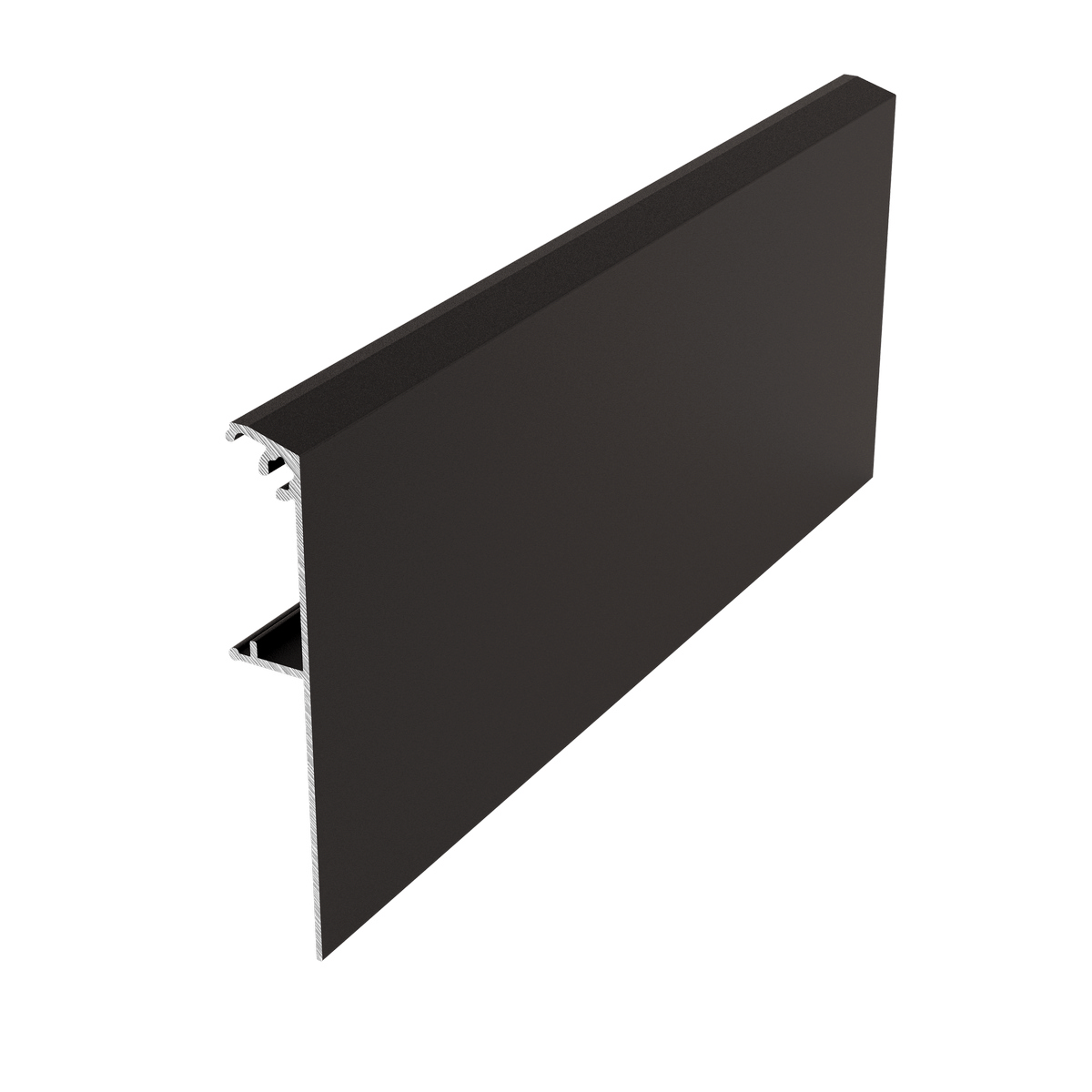 Профиль выполняет декоративную функцию, закрывая верхнюю направляющую и механизмы раздвижения в подвесной системе. Защелкивается над треком, установленном в дверном проеме в потолок. Устанавливается по лицевой стороне проема. По длине накладка равна верхней подвесной направляющей.