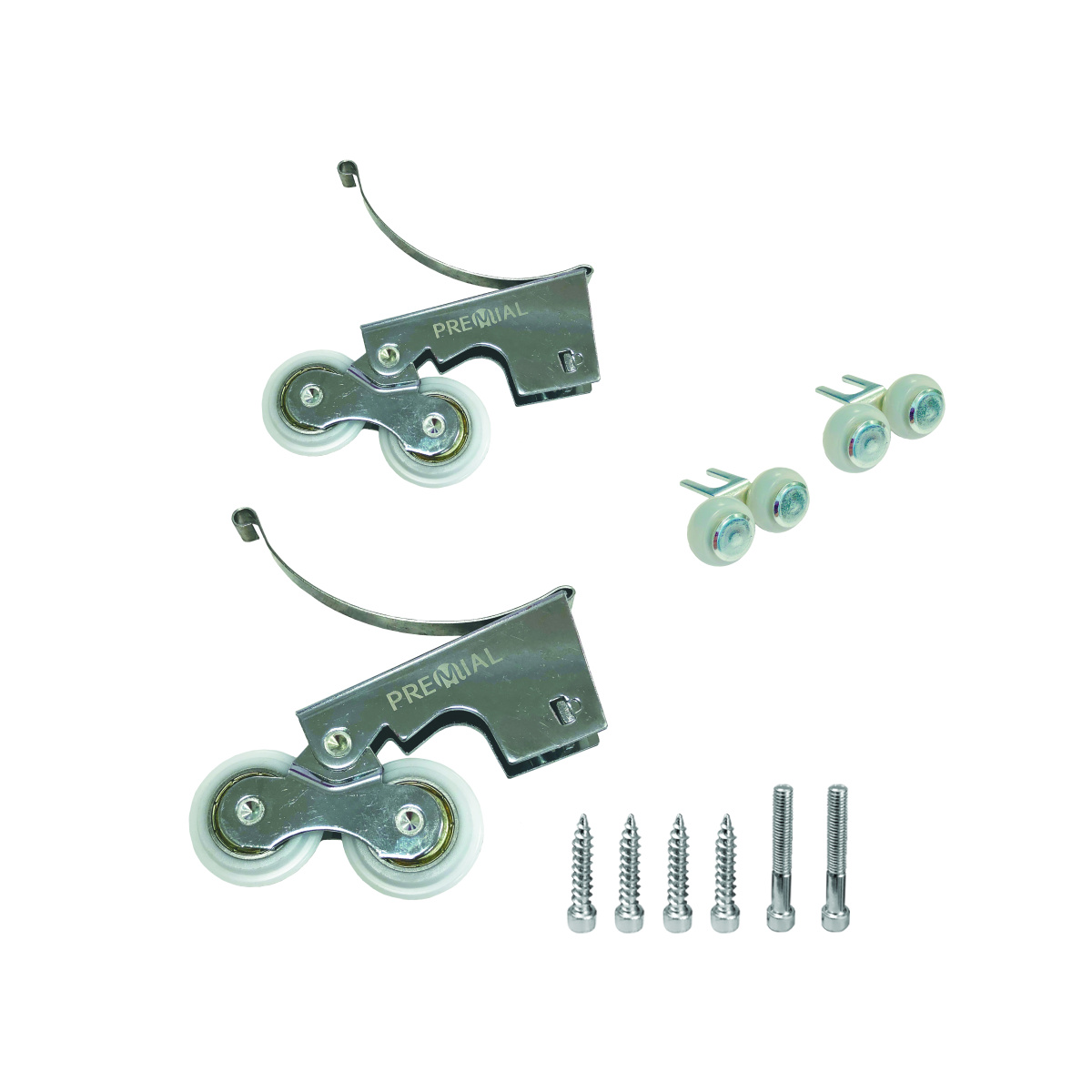 Ролики Double Premium оптимально подходят для узких (от 550 мм) и широких (от 1100 мм) дверей. Нижние двойные колеса — из плотного и твердого POM (полиоксиметилена) с высокой способностью сохранения формы и одновременной упругостью. Верхние колеса с подшипником класса "А".