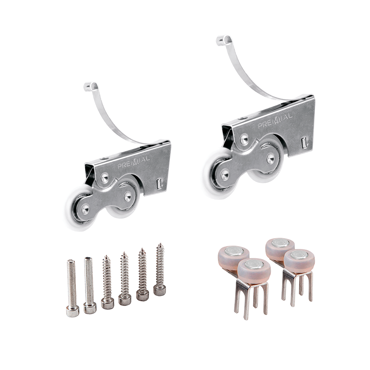 Ролики Double Premium оптимально подходят для узких (от 550 мм) и широких (от 1100 мм) дверей. Нижние двойные колеса — из плотного и твердого POM (полиоксиметилена) с высокой способностью сохранения формы и одновременной упругостью. Верхние колеса с подшипником класса "А".