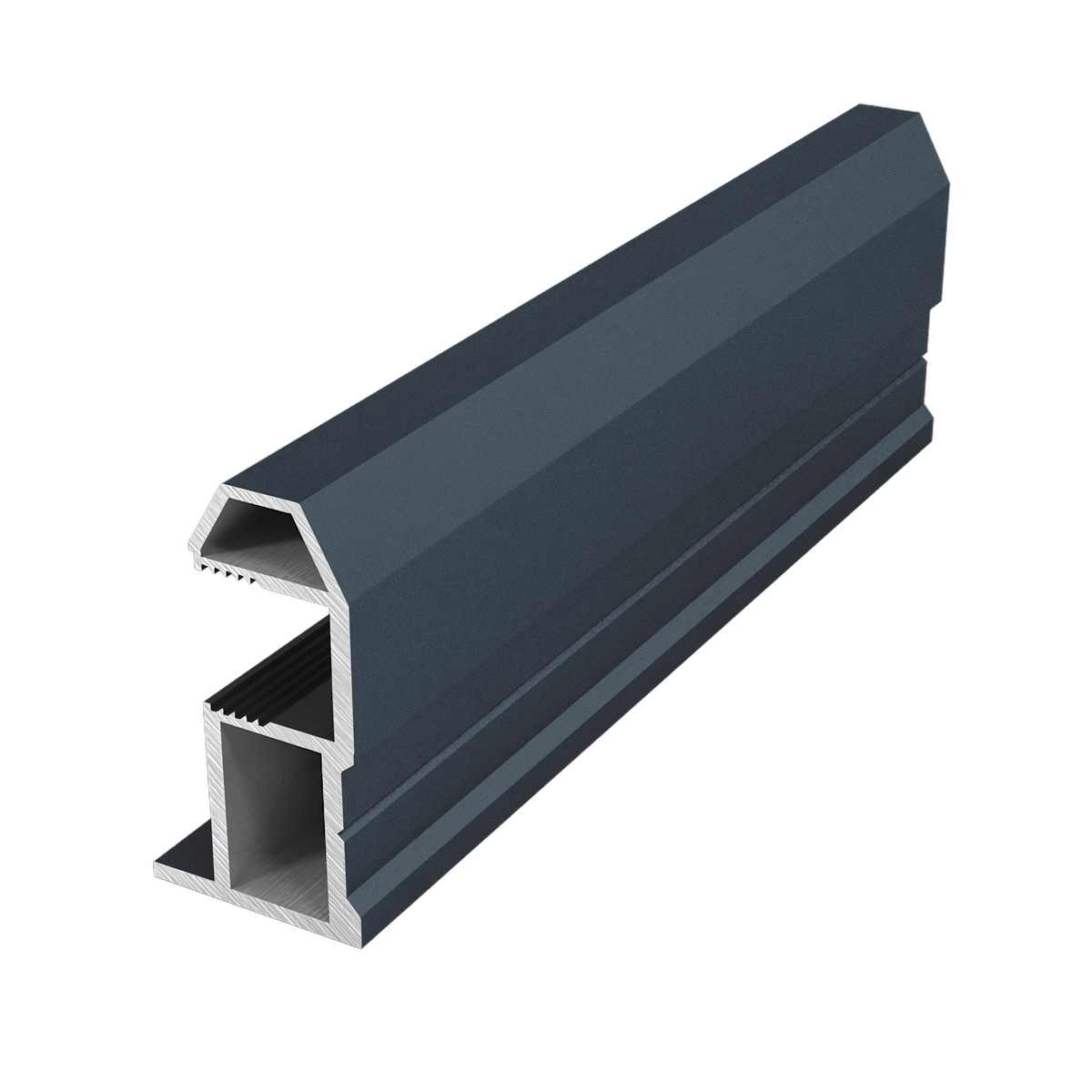 Вертикальный профиль Elephant FISH трапециевидной формы с видимой шириной 13 мм используется в качестве ручки в раздвижной узкорамочной системе Elephant и навесной системе AluForce.