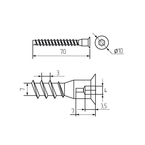 Винт конфирмат 7*70/1500 шт