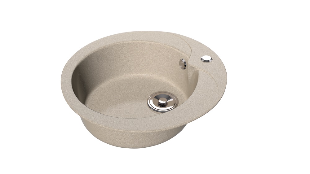 Мраморная мойка диаметром 470 мм с круглой чашей диаметром 365 мм. Надкрылок каплевидной формы чуть выступает на чашу мойки. Высота мойки 180 мм, глубина чаши 165 мм. Вес модели 12,5 кг. Мойка представлена в гамме из 7 матовых и 7 глянцевых цветов.