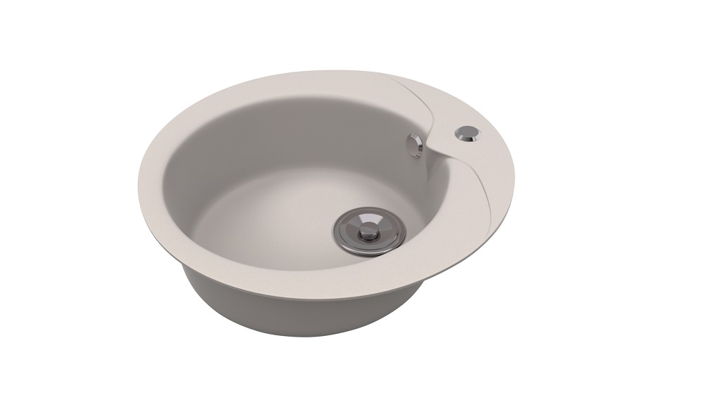 Мраморная мойка диаметром 470 мм с круглой чашей диаметром 365 мм. Надкрылок каплевидной формы чуть выступает на чашу мойки. Высота мойки 180 мм, глубина чаши 165 мм. Вес модели 12,5 кг. Мойка представлена в гамме из 7 матовых и 7 глянцевых цветов.