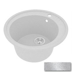 Каменная мойка диаметром 505 мм с круглой чашей диаметром 398 мм. Глубина мойки 180 мм при высоте мойки 200 мм. Диаметр сливного отверстия 116 мм. Мойка упакована в пакет и картонную коробку с маркировкой. Логотип размещен на шильдике в чаше мойки. Мойка представлена в 6 матовых и 6 глянцевых цветах. Вес изделия 12,3 кг.