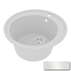 Каменная мойка диаметром 505 мм с круглой чашей диаметром 398 мм. Глубина мойки 180 мм при высоте мойки 200 мм. Диаметр сливного отверстия 116 мм. Мойка упакована в пакет и картонную коробку с маркировкой. Логотип размещен на шильдике в чаше мойки. Мойка представлена в 6 матовых и 6 глянцевых цветах. Вес изделия 12,3 кг.