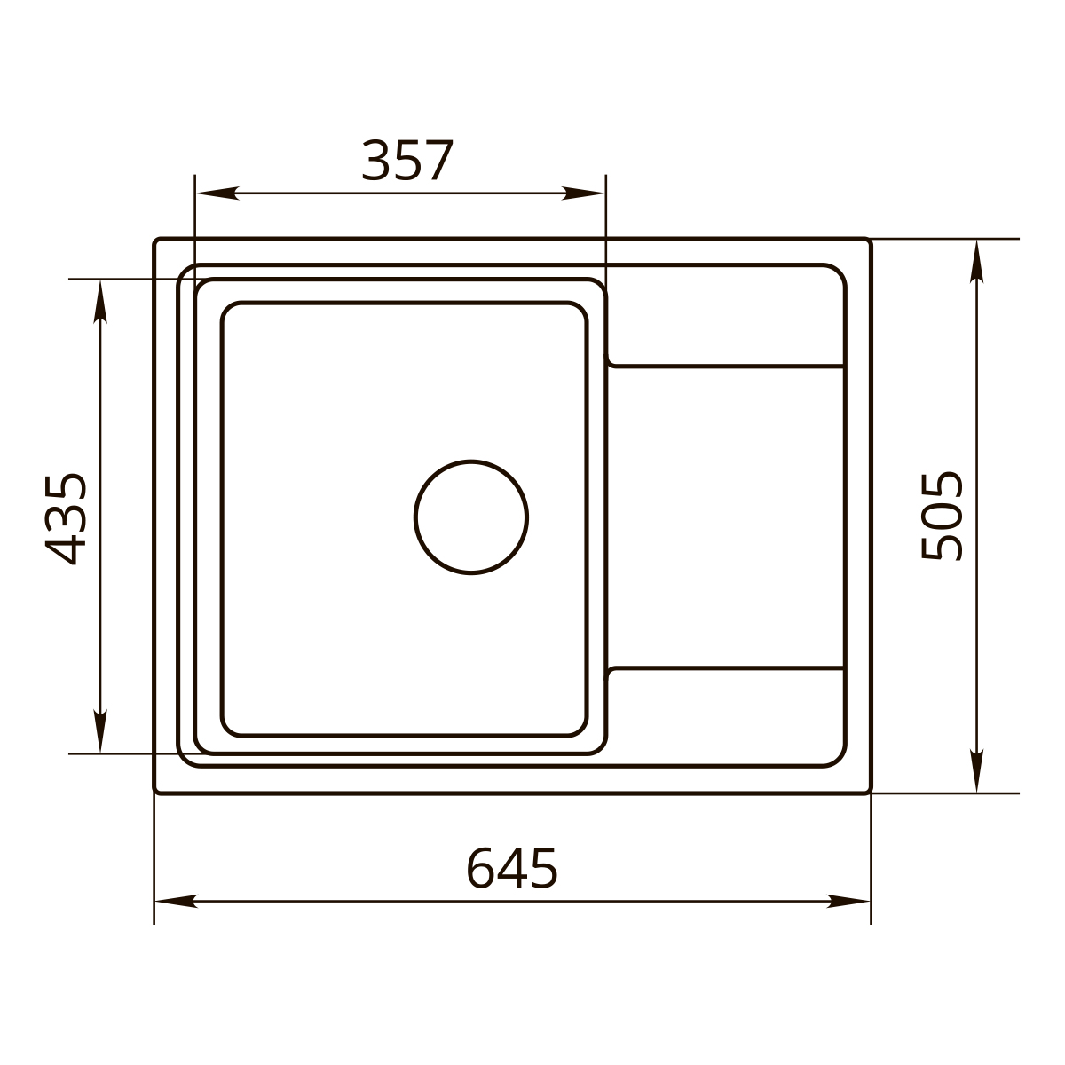 Прямоугольная каменная мойка размером 645х505 мм с чашей 357х435 мм в матовом и в глянцевом исполнении, крыло с двумя рельефами. Глубина чаши 190 мм, высота мойки 210 мм. Вес модели 17 кг. Диаметр сливного отверстия 116 мм. Мойка поставляется в 6 матовых и 6 глянцевых цветах. Мойка упаковывается в вакуумный пакет и индивидуальную маркированную коробку. Оригинальность изделия подтверждается шильдиком с логотипом Premial®.