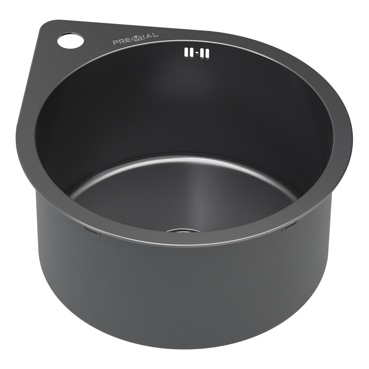 Кухонная мойка из премиальной нержавеющей стали до 3 мм, врезного или подстольного монтажа, каплевидной формы 420х490 мм, с круглой чашей диаметром 370 мм, глубина чаши 200 мм.